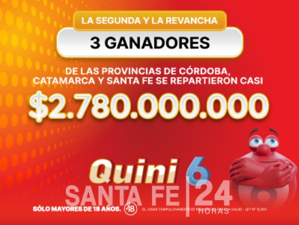 Pullaro lanzó Agroactiva 2026: “La salida es con el campo y la industria” Ver más Por el reclamo de una deuda de “Tin” Angulo: Unión fue inhibido por la FIFA Ver más Santafesino condenado: violaba a un familiar con retraso madurativo Ver más Santa Fe: detuvieron a un hombre en una pensión del microcentro por un homicidio Ver más Antes de ser una marca histórica, La Campagnola fue el sueño de dos hermanos italianos Ver más Confirmaron la prisión perpetua a Martín Kunz, el ex liceísta homicida Ver más Cerró la fábrica que producía Sancorito y Shimmy: 400 trabajadores sin empleo Ver más Las obras del CARD avanzan a ritmo sostenido rumbo a los Juegos Suramericanos Ver más Desapareció un empresario de Reconquista: hallaron su lancha a la deriva Ver más Distintos tips para jugar de manera responsable Los jugadores de Primera se suman a la campaña No Garpa de Lotería de Santa Fe ¡Un afortunado se llevó $600 millones en el Quini 6! ¡Con el Quini 6 podés hacerte millonario, jugá tu boleta! Inédito: en Santa Fe el empleo formal en la construcción crece; en el país en caída libre Pullaro: “Santa Fe muestra un modelo distinto en ciencia e innovación” Rige una suba salarial y bono para empleadas domésticas: cuánto cobran en marzo Ver más Pago de las Pensiones Sociales 5110 Ver más Lácteos Verónica: la provincia instrumenta un plan de asistencia para los trabajadores Ver más Multa millonaria y charlas obligatorias para el dueño del pitbull que mató a garrafa Ver más Persecución y captura en pleno centro de la ciudad de Santa Fe Ver más Leve condena a Nico Mattioli por atropellar y matar: sin carnet por siete años y un curso Ver más