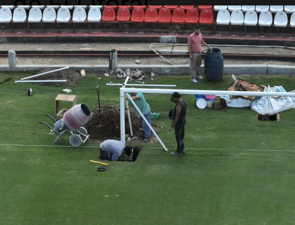 En cuanto a porqué hay tanta gente trabajando en el césped de la cancha, el mismo Pecantel explica que “estamos con el tablero, las ménsulas, las estructuras y el tendido de cables hasta las nuevas columnas”.