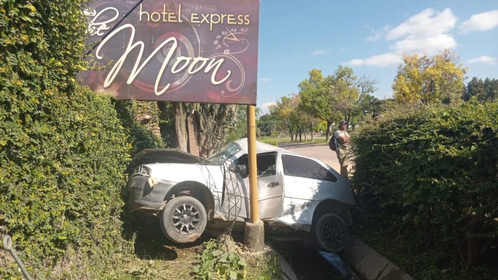 El siniestro ocurrió sobre avenida Aristóbulo del Valle, donde un automóvil Volkswagen Gol de color gris, por causas que aún se investigan, perdió el control y terminó impactando de manera violenta contra el ingreso a un motel alojamiento.