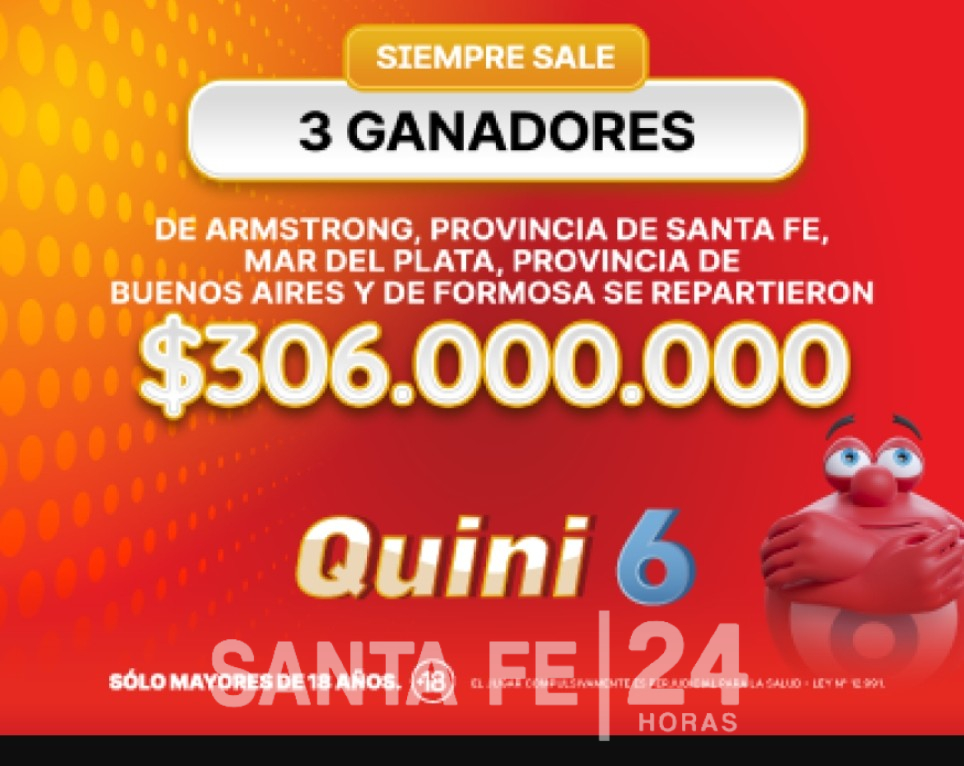 Finalizando el sorteo de Quini 6 de este domingo, tres grandes afortunados se hicieron acreedores con seis aciertos del premio
