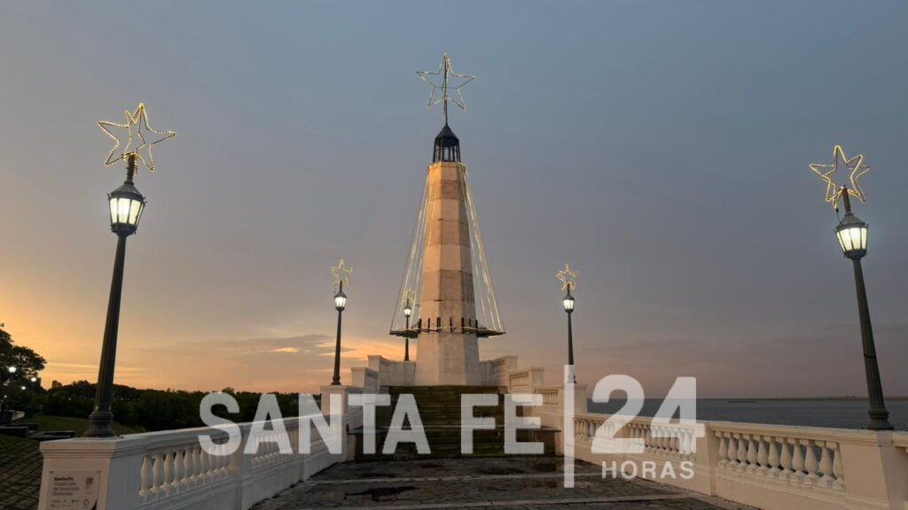 La tradicional decoración navideña ilumina desde este lunes la Costanera santafesina. El municipio intervino el Faro con el fin de