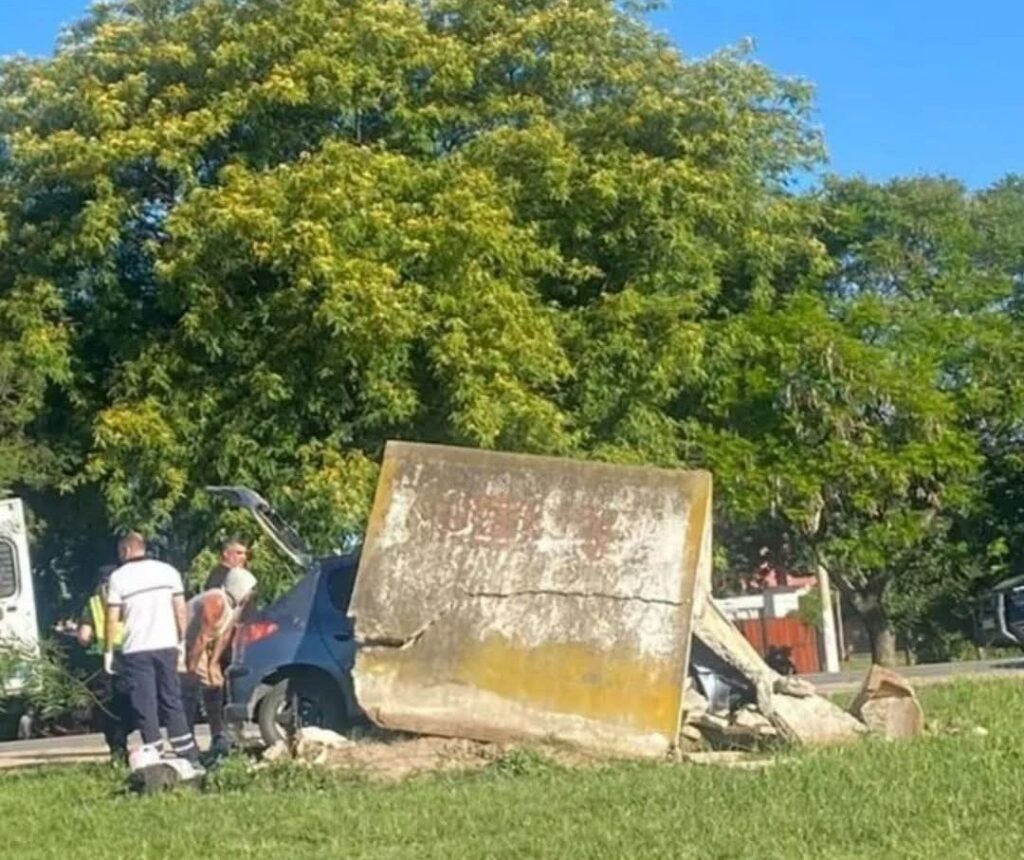 Las imágenes del siniestro muestran la estructura destruida y el vehículo incrustado por completo. Hasta el momento, se desconocen las causas del accidente, y las circunstancias del hecho son materia de investigación.