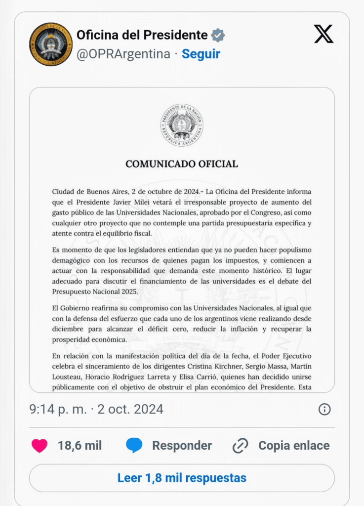 La medida fue publicada en el Boletín Oficial. Había sido anticipada por la Oficina del Presidente mediante un comunicado. Se
