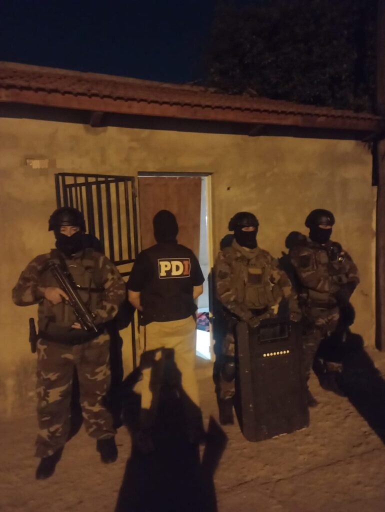La Policía de Investigaciones (PDI), dependiente del Ministerio de Justicia y Seguridad, realizó múltiples allanamientos y detuvo a dos hombres M.D.C. y A. O. F. y a tres mujeres E.D.D., C.T.G., y a C.V.S. por la causa Infracción a la Ley 23.737 – Tenencia y Comercialización de Estupefacientes.