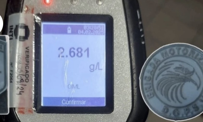 Al realizar el control de alcoholemia, el conductor arrojó un resultado alarmante: 2.68 g/l de alcohol en sangre, cifra que supera ampliamente el límite permitido por la ley nacional, que establece tolerancia cero para conductores de vehículos en este tipo de situaciones.