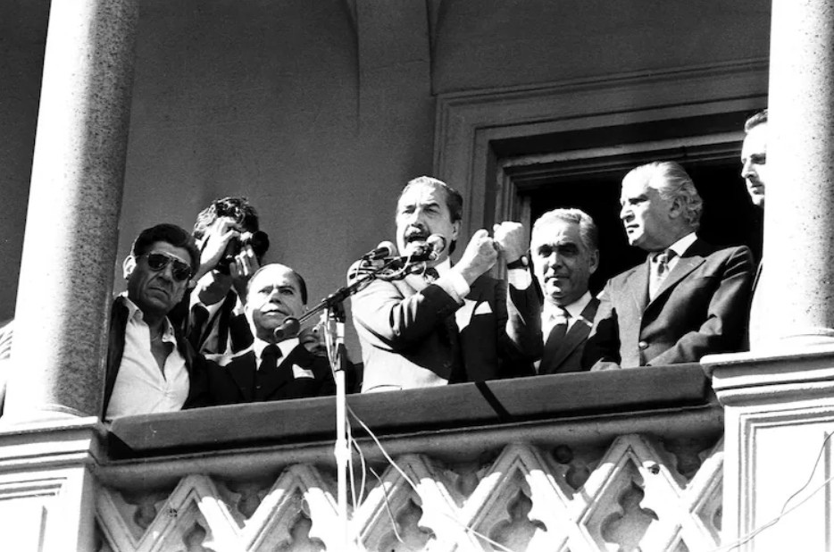 “Voy a hablar ahora”. Raúl Alfonsín bajó del helicóptero recién aterrizado en el techo. Se acomodó el pelo alborotado por el giro de la hélice. Descendió hasta el primer piso, esquivó a la muchedumbre de una Casa de Gobierno revolucionada y, sin rodeos ni conciliábulos, salió al balcón y soltó las palabras que se clavaron para siempre en la memoria colectiva de la política nacional.