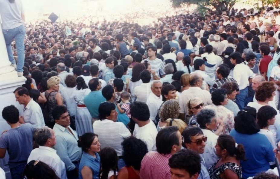 Impresionante. Miles de personas en la puerta del Cementerio Municipal esperando la llegada del féretro de Carlos Monzón. Archivo El Litoral