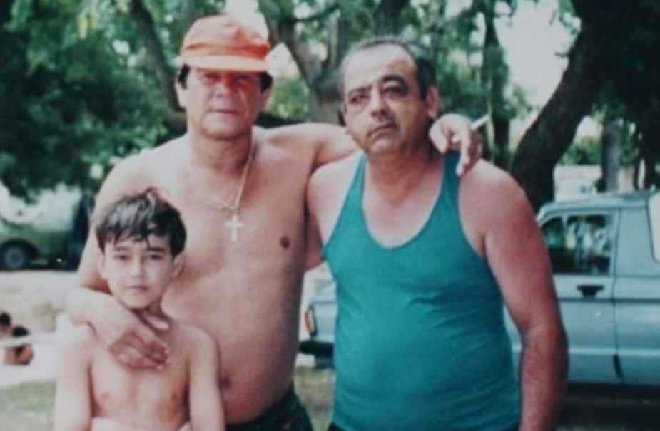 La última foto del ex campeón. En el camping de Cayastá, junto a uno de sus tantos admiradores y su hijo. Archivo El Litoral