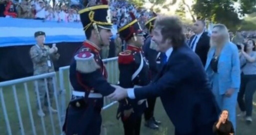 «En este campo los Granaderos derramaron su sangre en una patria que se estaba gestando. La gesta sanmartiniana fue una verdadera revolución. Puso a las provincias unidas de pie por primera vez en la historia, trajo la libertad a estas tierras», subrayó Milei.