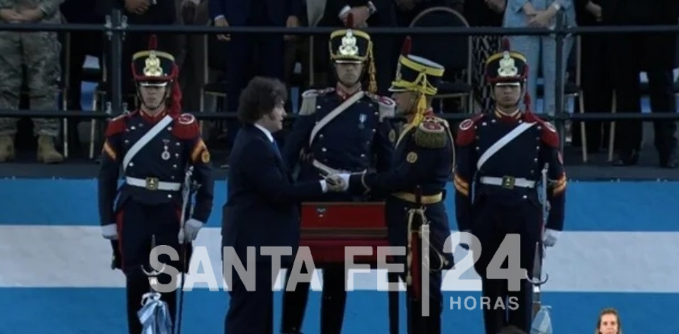 El presidente Javier Milei encabezó este sábado el acto en Santa Fe por los 213 años de la Batalla de San Lorenzo, oportunidad en la que hizo entrega del sable corvo de José de San Martín al Regimiento de Granaderos a Caballo, después de la polémica por el retiro de esa pieza del Museo Histórico Nacional.