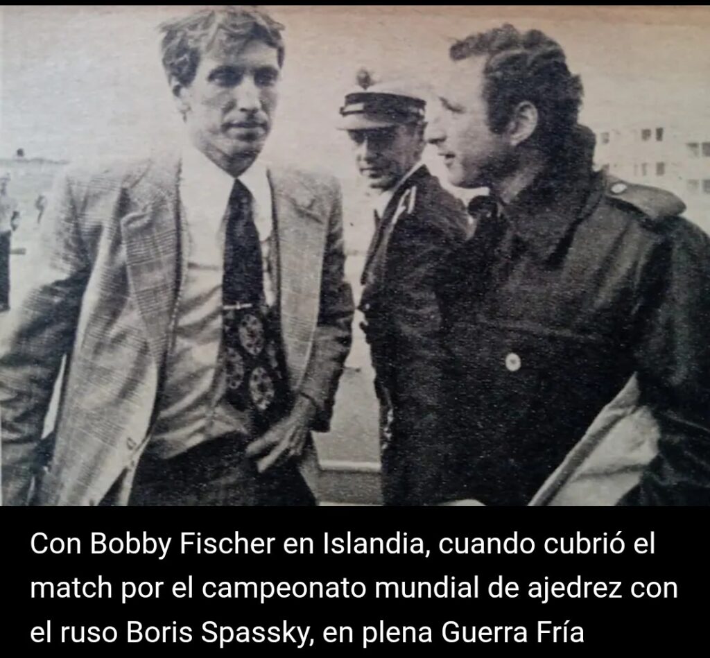 Una década antes, en 1972, hizo una de sus más memorables coberturas profesionales, con el mismo espíritu y fuera del boxeo. Sin saber nada de ajedrez narró desde Reikjavik (Islandia) la batalla en plena Guerra Fría por el título mundial entre el ruso Boris Spassky y el norteamericano Robert Fischer. Siempre recordó que enviar el material a Buenos Aires (por telegrama, télex, llamadas telefónicas imposibles o sobres llevados en vuelos comerciales por pasajeros espontáneos) como una verdadera proeza.