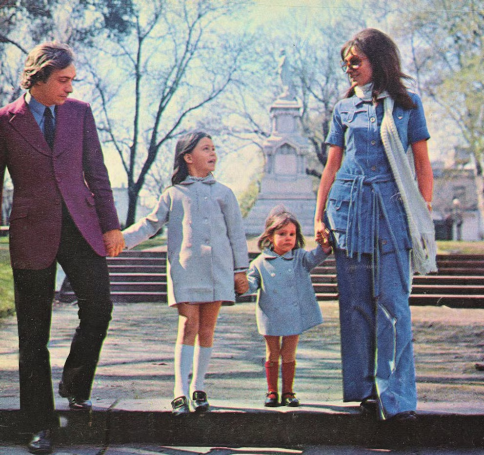 Luis Brandoni junto a Martha Bianchi y sus hijas Florencia y Micaela en 1970