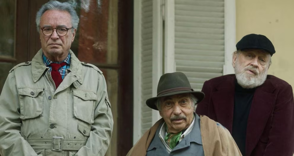 Luis Brandoni en El secreto de la comadreja, una de sus últimas películas, junto a Oscar Martínez y Marcos Mundstock