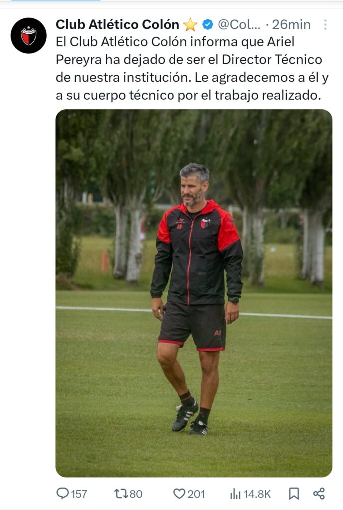 Luego de la caída de Colón ante Chacarita por 3 a 2 pese a haber mejorado en lo futbolístico teniendo en cuenta los partidos anteriores, el sabalero sumó la cuarta derrota consecutiva. Durante la semana trascendió que el «Pata» tendría su ultima oportunidad en la Fecha 11 y finalmente el resultado obtenido desencadenó en la desvinculación del entrenador.