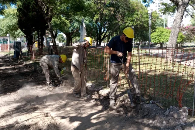 En esta primera etapa, las tareas previstas incluyen una serie de obras estructurales y de equipamiento urbano. Entre ellas se destaca el reemplazo de las veredas perimetrales por solado intertrabado de adoquines de hormigón, lo que permitirá garantizar continuidad material con las obras realizadas en el Parque Alberdi y fortalecer la integración entre ambos espacios verdes.