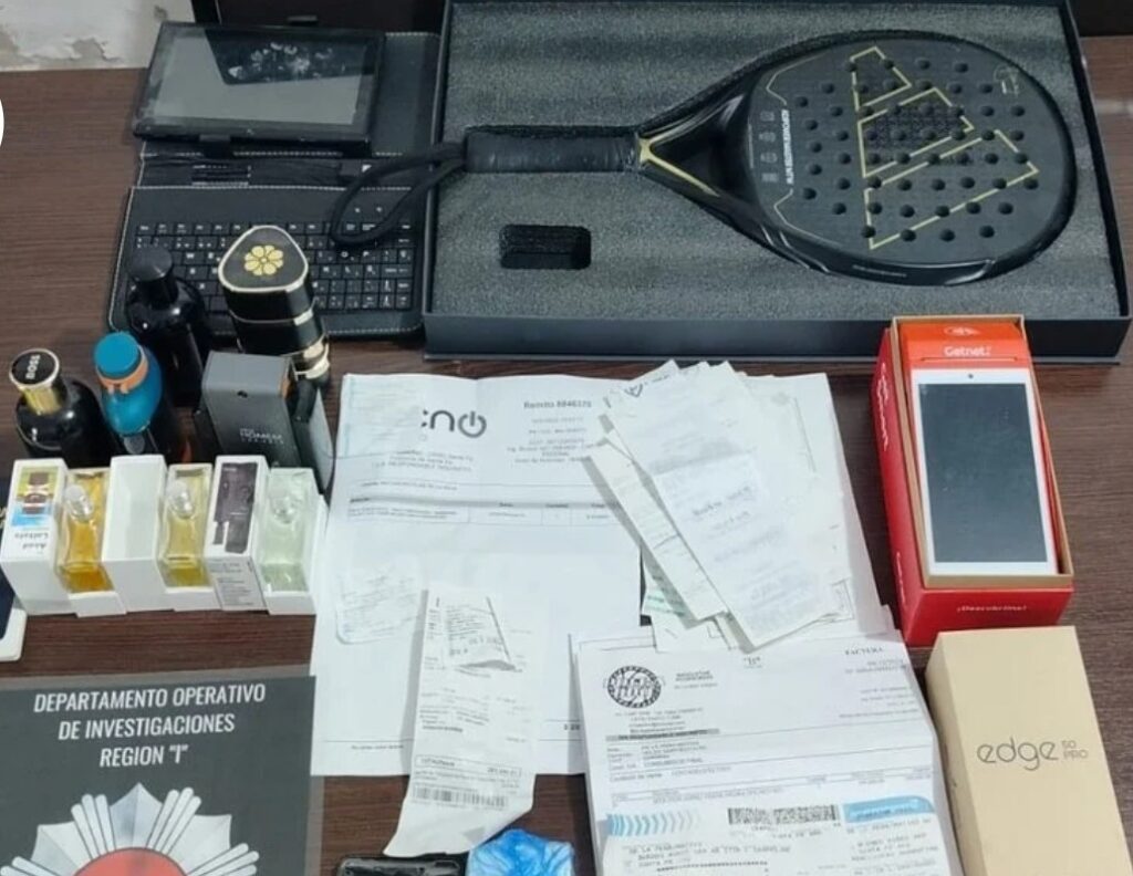 Además, los uniformados incautaron dos teléfonos celulares, un posnet marca Getnet con cuatro rollos de papel, 8 frascos de perfumes varios, un estetoscopio, 57 tickets de órdenes de consulta, una bicicleta marza Zion, dos televisores, una paleta de padel Adidas, una tablet, una moto Corven, documentación variada y facturas de compra.