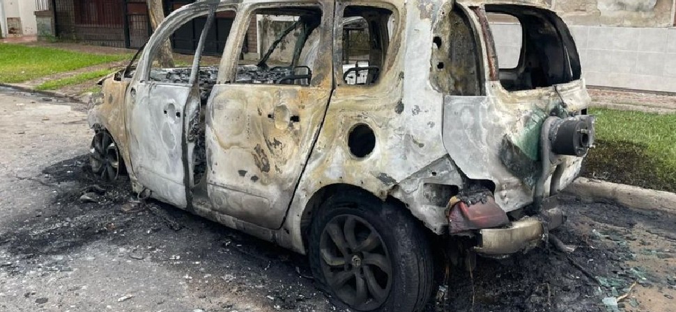 “Hablaban fuerte mientras prendía fuego el auto”, sostuvo la testigo. El fuego alcanzó el pasto de la vereda, un pequeño árbol y plantas del frente, además de provocar daños visibles en persianas, paredes y la cabina de gas de la vivienda.