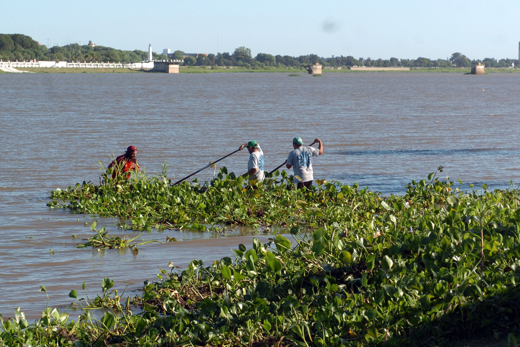 Aghemo explicó además la complejidad técnica de la situación actual: “Este embalsado se da por la crecida que se viene desprendiendo de arriba. Las tareas son mayormente manuales: los chicos sacan la vegetación, la encauzan río abajo y, en una segunda etapa, juntamos lo que queda con rastrillos para embolsar y retirarlo. También estamos coordinando con el Ejército para trabajar sobre el embalsado que se formó debajo del Puente Oroño, para ayudar a que siga la corriente”.