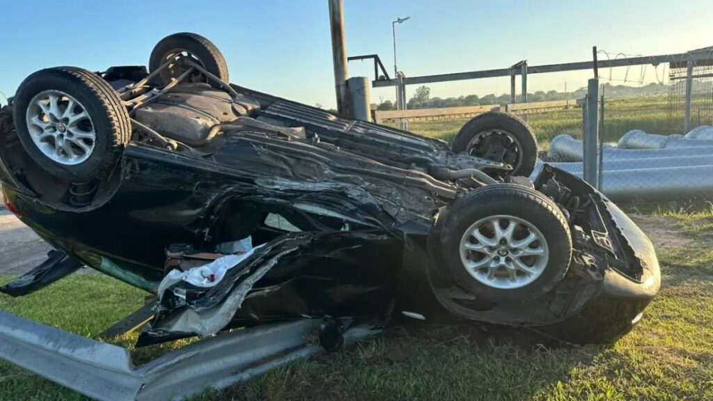 Se trata de un Alfa Romeo color negro que volcó aproximadamente a las 3:40 de este 10 de diciembre a la altura de la Estación de Bombeo 6, antes de llegar a Avenida Teniente Loza, en sentido norte hacia la ruta 70.