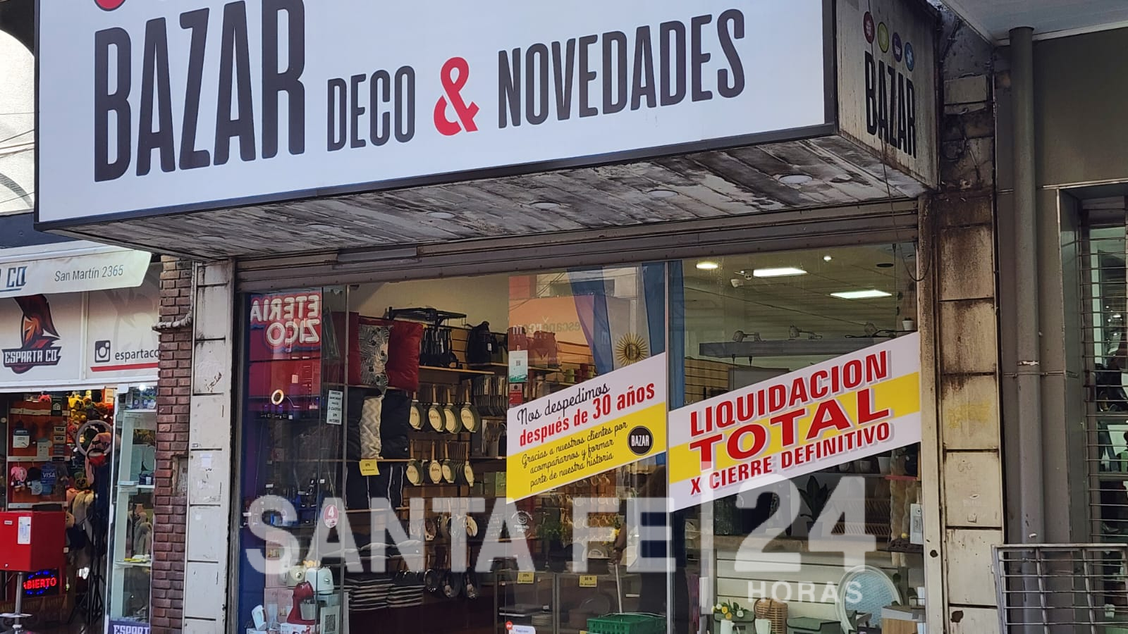 La crisis que afecta al comercio santafesino, y se ve todos los días con locales que cierran y carteles de inmobiliarias ofreciendo alquileres, también parece afectar al prosecretario del Centro Comercial de Santa Fe. Esta semana aparececieron en sus bazares, uno ubicado por calle Mendoza al 2.600 y otro por peatonal San Martín, las vidrieras con gigantografías que avisan de una gran liquidación por cierre.