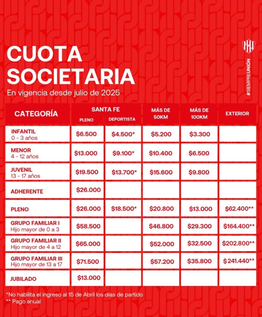 Desde el club remarcaron que el criterio de actualización periódica tiene como fin mantener el funcionamiento de la institución en un contexto económico complejo, y garantizar el desarrollo de actividades deportivas, sociales y de infraestructura. Los valores ya se encuentran vigentes y pueden ser consultados también en las plataformas oficiales de Unión
